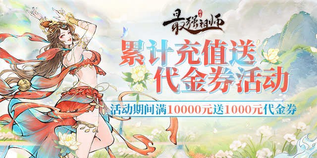 活动范围:九游安卓版《最强祖师》活动规则:1. 活动期间,累计充值金额(不含代金券)满10000元,即可获得160元代金券(充值满648.0元可用);活动说明:1. 以上每个规则每个UC帐号可参与1次,达到参与次数上限后不再获得奖品;2. 奖品数量有限,赠完即活动结束;奖品会在24小时内发放;奖品说明:1. 代金券自领取成功起7天内使用有效,不可以叠加使用,不可转赠;2. 代金券仅限在九游安卓版《最强祖师》内使用;
